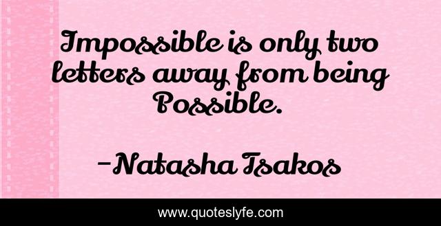 "Natasha Tsakos Quotes." Quoteslyfe.com, 2025. Sat. 06 Dec. 2025. <https://www.quoteslyfe.com/quote/Impossible-is-only-two-letters-away-from-130979>.