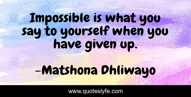 "Matshona Dhliwayo Quotes." Quoteslyfe.com, 2025. Fri. 05 Dec. 2025. <https://www.quoteslyfe.com/quote/Impossible-is-what-you-say-to-yourself-280327>.