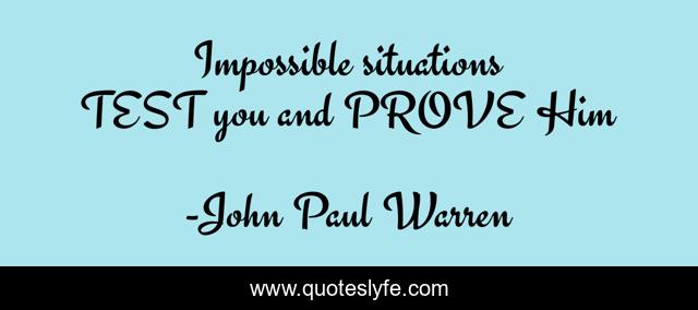 "John Paul Warren Quotes." Quoteslyfe.com, 2025. Sat. 06 Dec. 2025. <https://www.quoteslyfe.com/quote/Impossible-situations-TEST-you-and-PROVE-Him-63966>.