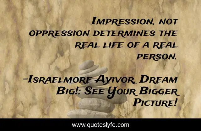 "Israelmore Ayivor, Dream Big!: See Your Bigger Picture! Quotes." Quoteslyfe.com, 2025. Fri. 05 Dec. 2025. <https://www.quoteslyfe.com/quote/Impression-not-oppression-determines-the-real-life-129461>.