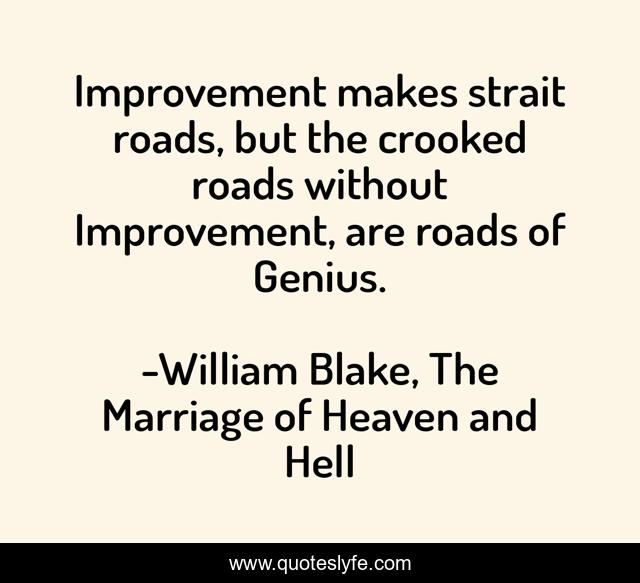 "William Blake, The Marriage of Heaven and Hell Quotes." Quoteslyfe.com, 2025. Fri. 05 Dec. 2025. <https://www.quoteslyfe.com/quote/Improvement-makes-strait-roads-but-the-crooked-28384>.