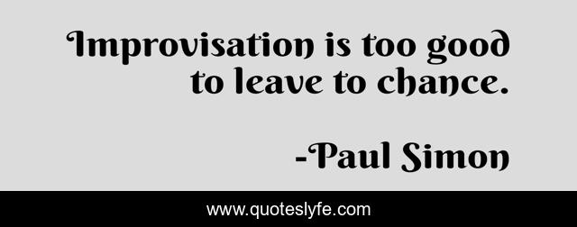 This page presents the quote "Improvisation is too good to leave to chance.". Author of this quote is Paul Simon. This quote is about leave, good, improvisation,.