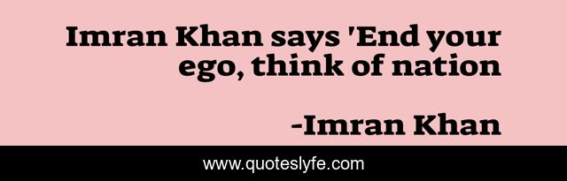 This page presents the quote "Imran Khan says 'End your ego, think of nation". Author of this quote is Imran Khan. .