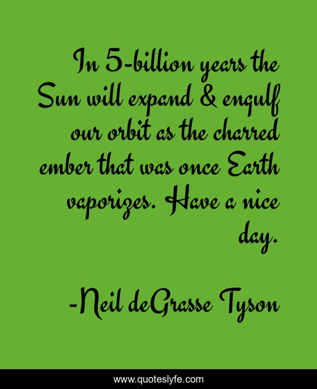 "Neil deGrasse Tyson Quotes." Quoteslyfe.com, 2025. Sat. 06 Dec. 2025. <https://www.quoteslyfe.com/quote/In-5-billion-years-the-Sun-will-21893>.