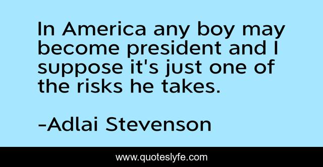 This page presents the quote "In America any boy may become president and I suppose it's just one of the risks he takes.". Author of this quote is Adlai Stevenson. .