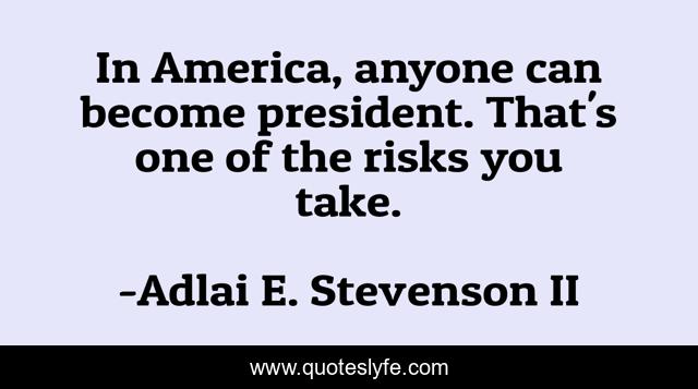 This page presents the quote "In America, anyone can become president. That's one of the risks you take.". Author of this quote is Adlai E. Stevenson II. This quote is about politics, america, politics-of-the-united-states,.