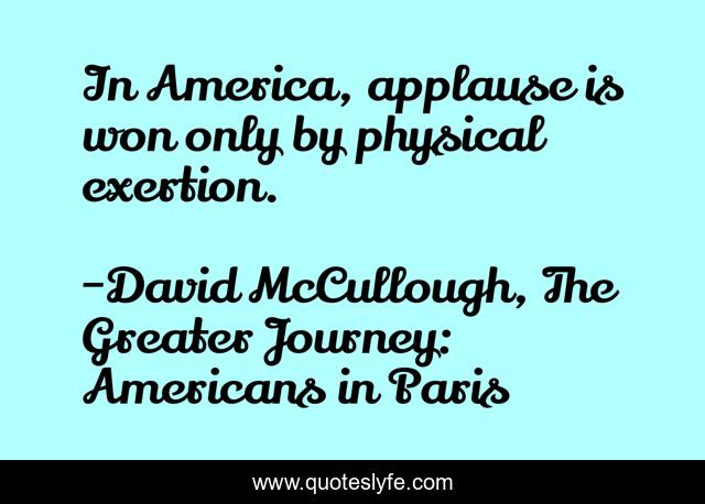 This page presents the quote "In America, applause is won only by physical exertion.". Author of this quote is David McCullough, The Greater Journey: Americans in Paris. This quote is about appreciation, arts, entertainment, sports,.