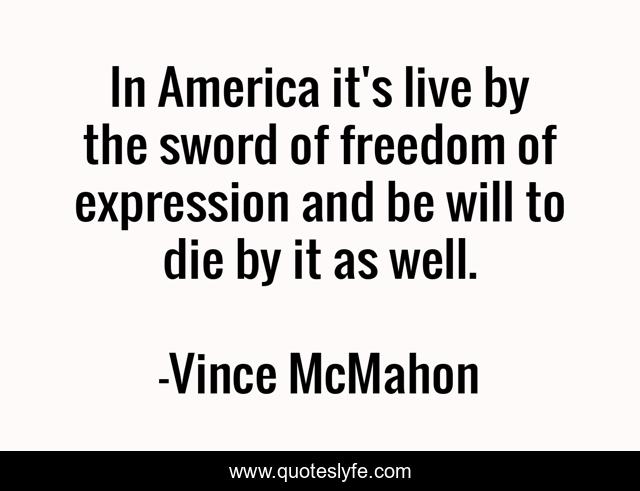 This page presents the quote "In America it's live by the sword of freedom of expression and be will to die by it as well.". Author of this quote is Vince McMahon. This quote is about live, america, sword,.