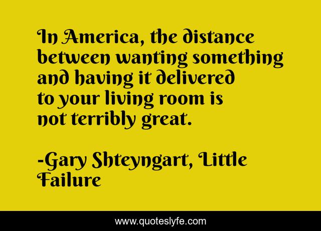 This page presents the quote "In America, the distance between wanting something and having it delivered to your living room is not terribly great.". Author of this quote is Gary Shteyngart, Little Failure. This quote is about desire, wants, goods, ordering, united-states, america,.