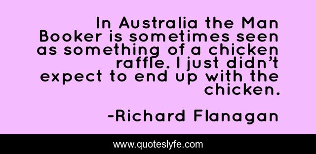 This page presents the quote "In Australia the Man Booker is sometimes seen as something of a chicken raffle. I just didn’t expect to end up with the chicken.". Author of this quote is Richard Flanagan. This quote is about literary-prize, authors, man-booker,.