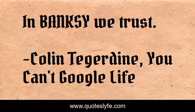 "Colin Tegerdine, You Can't Google Life Quotes." Quoteslyfe.com, 2025. Sat. 06 Dec. 2025. <https://www.quoteslyfe.com/quote/In-BANKSY-we-trust-30147>.