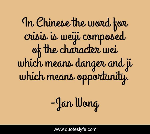 "Jan Wong Quotes." Quoteslyfe.com, 2025. Fri. 05 Dec. 2025. <https://www.quoteslyfe.com/quote/In-Chinese-the-word-for-crisis-is-262145>.