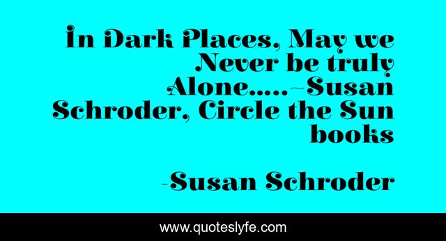 This page presents the quote "In Dark Places, May we Never be truly Alone.....~Susan Schroder, Circle the Sun books". Author of this quote is Susan Schroder. This quote is about children-s-books, fantasy, illustrated-books, mythical,.
