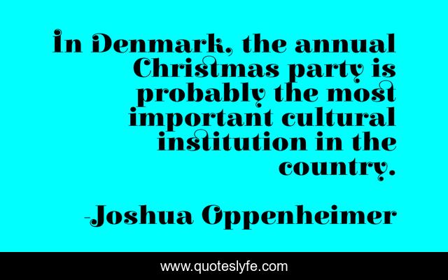This page presents the quote "In Denmark, the annual Christmas party is probably the most important cultural institution in the country.". Author of this quote is Joshua Oppenheimer. This quote is about party, important, country,.