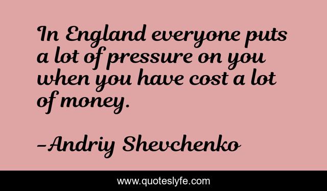 This page presents the quote "In England everyone puts a lot of pressure on you when you have cost a lot of money.". Author of this quote is Andriy Shevchenko. This quote is about pressure, cost,.