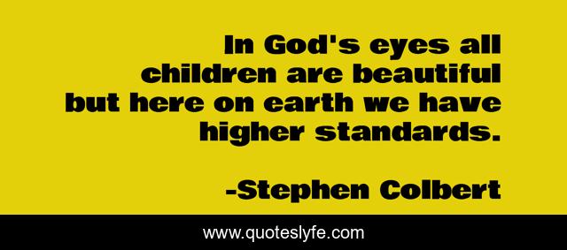 This page presents the quote "In God's eyes all children are beautiful but here on earth we have higher standards.". Author of this quote is Stephen Colbert. This quote is about humor, children,.