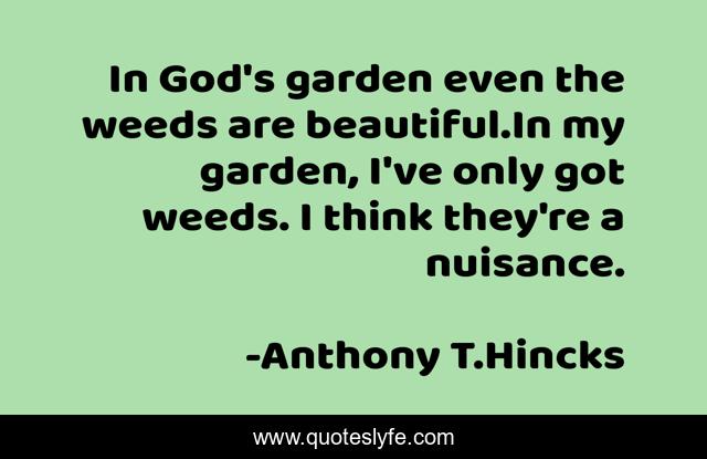 This page presents the quote "In God's garden even the weeds are beautiful.In my garden, I've only got weeds. I think they're a nuisance.". Author of this quote is Anthony T.Hincks. This quote is about life, love, garden, god, philosophy, religion, weeds, nuisance, flowers,.