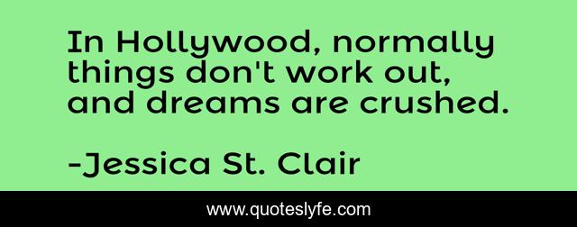 This page presents the quote "In Hollywood, normally things don't work out, and dreams are crushed.". Author of this quote is Jessica St. Clair. This quote is about hollywood, work, work out,.