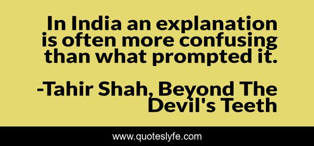 "Tahir Shah, Beyond The Devil's Teeth Quotes." Quoteslyfe.com, 2025. Fri. 05 Dec. 2025. <https://www.quoteslyfe.com/quote/In-India-an-explanation-is-often-more-103968>.