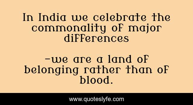 This page presents the quote "In India we celebrate the commonality of major differences". Author of this quote is we are a land of belonging rather than of blood.. .
