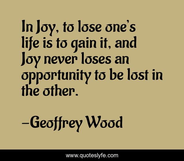 "Geoffrey Wood Quotes." Quoteslyfe.com, 2025. Fri. 05 Dec. 2025. <https://www.quoteslyfe.com/quote/In-Joy-to-lose-one-s-life-97625>.