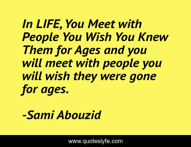 This page presents the quote "In LIFE, You Meet with People You Wish You Knew Them for Ages and you will meet with people you will wish they were gone for ages.". Author of this quote is Sami Abouzid. This quote is about love, affection,.