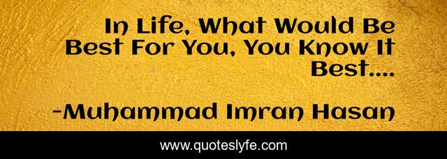 This page presents the quote "In Life, What Would Be Best For You, You Know It Best....". Author of this quote is Muhammad Imran Hasan. This quote is about emotion, inner-voice, life-lesson, inner-self, mind, life, truth, spirit,.