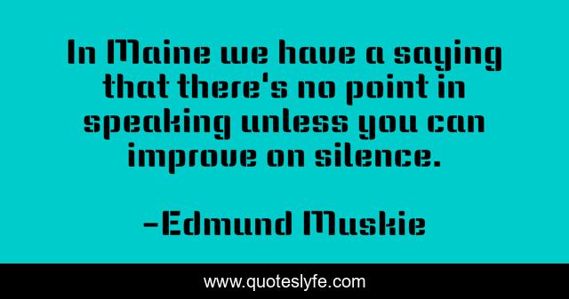 This page presents the quote "In Maine we have a saying that there's no point in speaking unless you can improve on silence.". Author of this quote is Edmund Muskie. This quote is about speakers, speeches,.