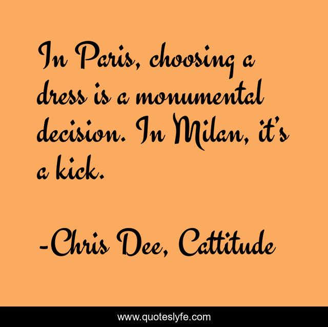 "Chris Dee, Cattitude Quotes." Quoteslyfe.com, 2025. Sat. 06 Dec. 2025. <https://www.quoteslyfe.com/quote/In-Paris-choosing-a-dress-is-a-97322>.