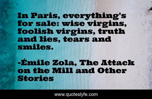 This page presents the quote "In Paris, everything's for sale: wise virgins, foolish virgins, truth and lies, tears and smiles.". Author of this quote is Émile Zola, The Attack on the Mill and Other Stories. This quote is about paris, rentafoil, vice,.
