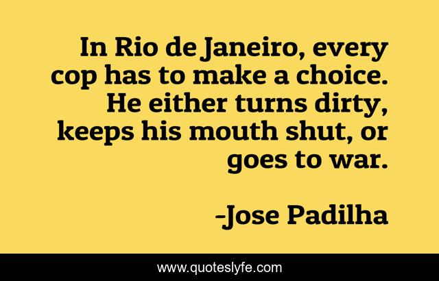 This page presents the quote "In Rio de Janeiro, every cop has to make a choice. He either turns dirty, keeps his mouth shut, or goes to war.". Author of this quote is Jose Padilha. This quote is about mouth, dirty, choice,.