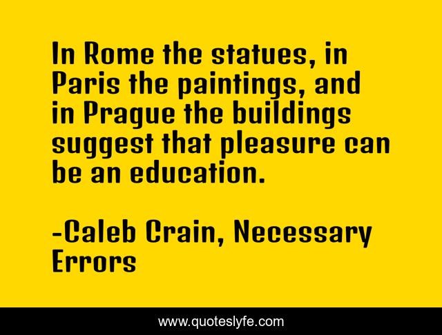 This page presents the quote "In Rome the statues, in Paris the paintings, and in Prague the buildings suggest that pleasure can be an education.". Author of this quote is Caleb Crain, Necessary Errors. This quote is about paris, prague, rome,.