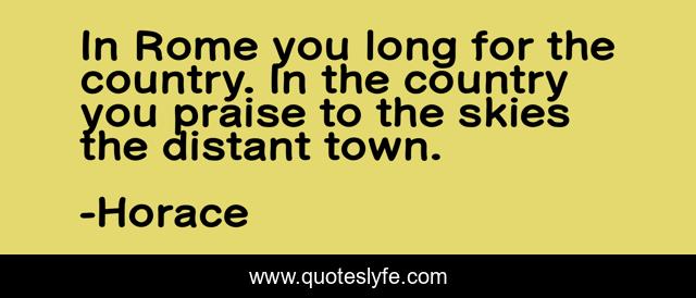 This page presents the quote "In Rome you long for the country. In the country you praise to the skies the distant town.". Author of this quote is Horace. .