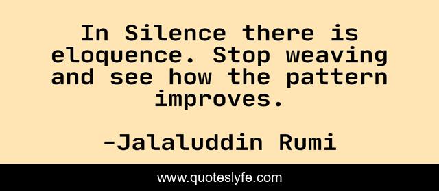 This page presents the quote "In Silence there is eloquence. Stop weaving and see how the pattern improves.". Author of this quote is Jalaluddin Rumi. .