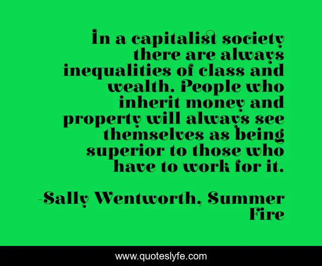 This page presents the quote "In a capitalist society there are always inequalities of class and wealth. People who inherit money and property will always see themselves as being superior to those who have to work for it.". Author of this quote is Sally Wentworth, Summer Fire. This quote is about inequality, equality, capitalism,.