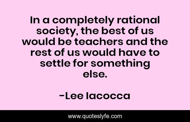 This page presents the quote "In a completely rational society, the best of us would be teachers and the rest of us would have to settle for something else.". Author of this quote is Lee Iacocca. .
