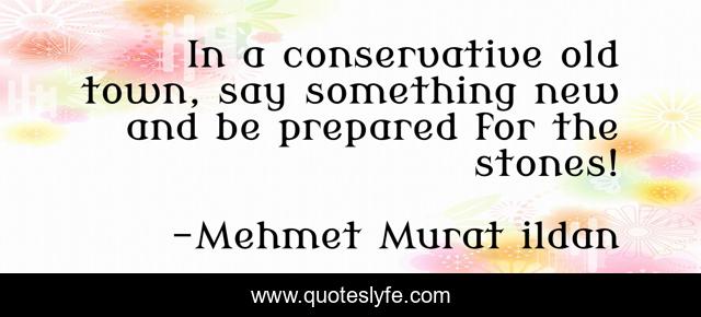 This page presents the quote "In a conservative old town, say something new and be prepared for the stones!". Author of this quote is Mehmet Murat ildan. .