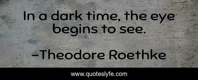 This page presents the quote "In a dark time, the eye begins to see.". Author of this quote is Theodore Roethke. This quote is about grief, enthusiasm, understanding-oneself-and-others, inspirational, wisdom,.