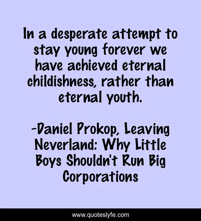 "Daniel Prokop, Leaving Neverland: Why Little Boys Shouldn't Run Big Corporations Quotes." Quoteslyfe.com, 2025. Sat. 06 Dec. 2025. <https://www.quoteslyfe.com/quote/In-a-desperate-attempt-to-stay-young-203543>.