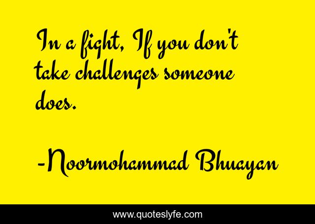 This page presents the quote "In a fight, If you don't take challenges someone does.". Author of this quote is Noormohammad Bhuayan. This quote is about challenge, fight,.