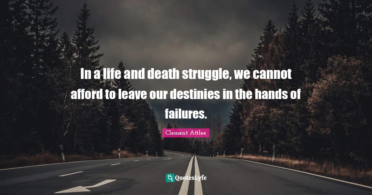 This page presents the quote "In a life and death struggle, we cannot afford to leave our destinies in the hands of failures.". Author of this quote is Clement Attlee. This quote is about struggle, hands, destiny, life and death, war,.