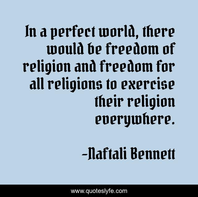 This page presents the quote "In a perfect world, there would be freedom of religion and freedom for all religions to exercise their religion everywhere.". Author of this quote is Naftali Bennett. This quote is about freedom, exercise, world,.