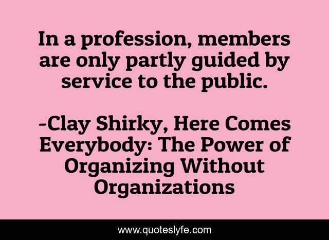"Clay Shirky, Here Comes Everybody: The Power of Organizing Without Organizations Quotes." Quoteslyfe.com, 2025. Fri. 05 Dec. 2025. <https://www.quoteslyfe.com/quote/In-a-profession-members-are-only-partly-102372>.