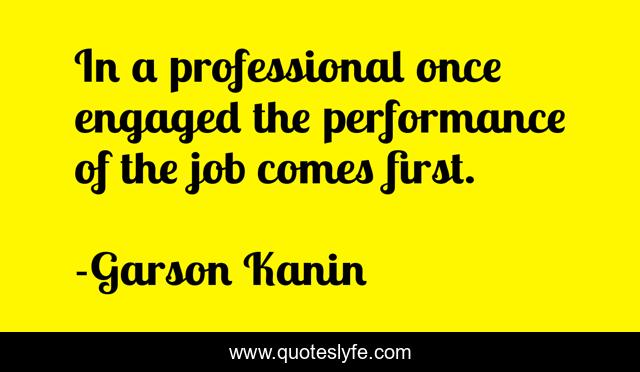 This page presents the quote "In a professional once engaged the performance of the job comes first.". Author of this quote is Garson Kanin. .