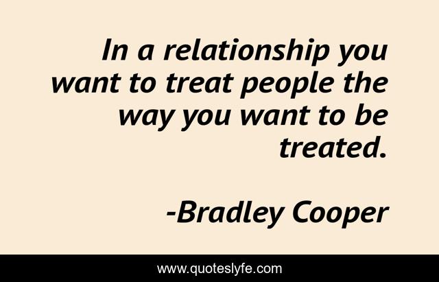 This page presents the quote "In a relationship you want to treat people the way you want to be treated.". Author of this quote is Bradley Cooper. This quote is about treat, people,.