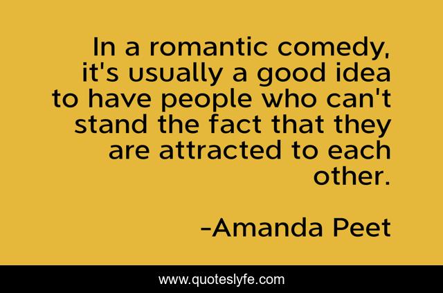 This page presents the quote "In a romantic comedy, it's usually a good idea to have people who can't stand the fact that they are attracted to each other.". Author of this quote is Amanda Peet. This quote is about good, stand, people,.