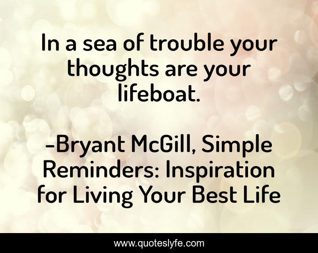 This page presents the quote "In a sea of trouble your thoughts are your lifeboat.". Author of this quote is Bryant McGill, Simple Reminders: Inspiration for Living Your Best Life. This quote is about troubles, sea, thoughts,.