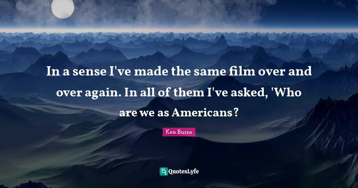 This page presents the quote "In a sense I've made the same film over and over again. In all of them I've asked, 'Who are we as Americans?". Author of this quote is Ken Burns. This quote is about film, made,.