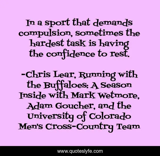 This page presents the quote "In a sport that demands compulsion, sometimes the hardest task is having the confidence to rest.". Author of this quote is Chris Lear, Running with the Buffaloes: A Season Inside with Mark Wetmore, Adam Goucher, and the University of Colorado Men's Cross-Country Team. .
