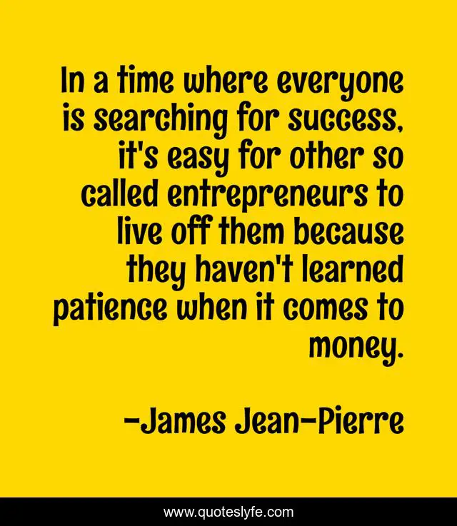 This page presents the quote "In a time where everyone is searching for success, it's easy for other so called entrepreneurs to live off them because they haven't learned patience when it comes to money.". Author of this quote is James Jean-Pierre. This quote is about entrepreneur, patience,.